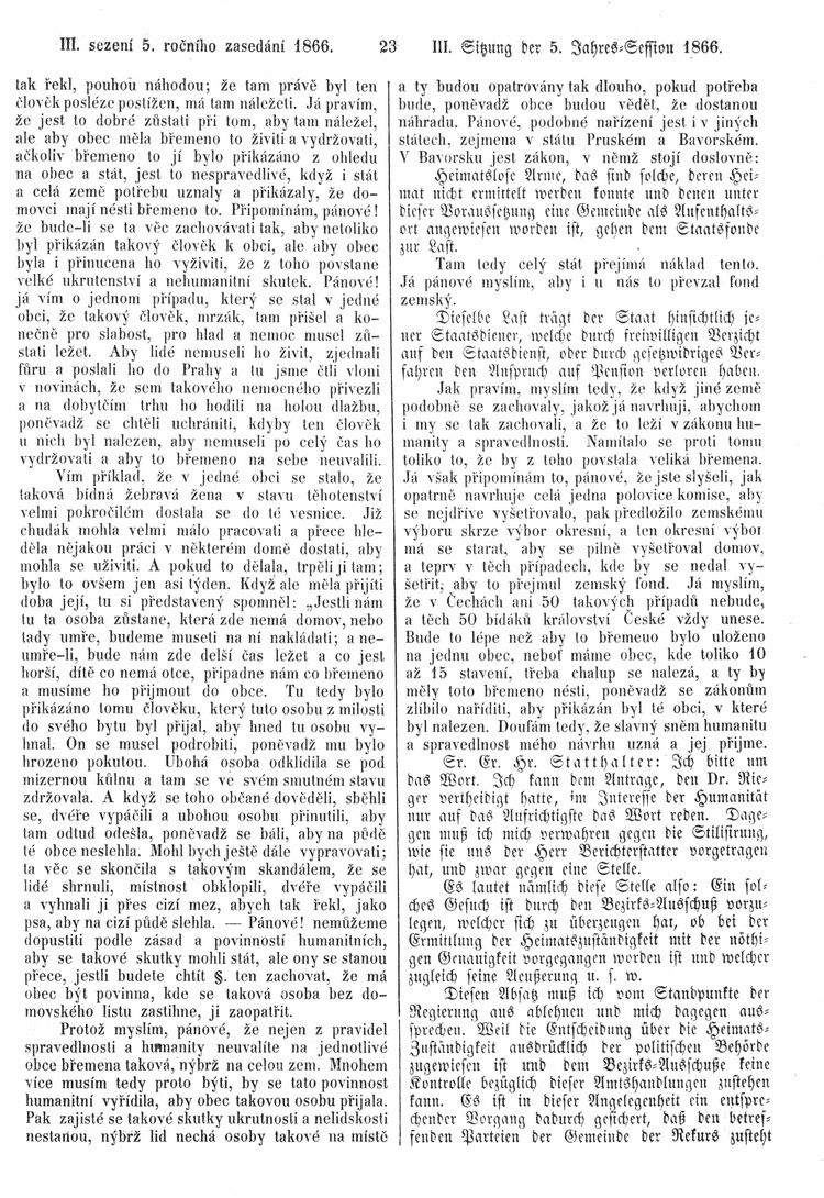 Nacházíte se: Digitální knihovna › Sněm království Českého 1861-1866 › Stenoprotokoly › 3. schůze › Pátek 23. listopadu 1866