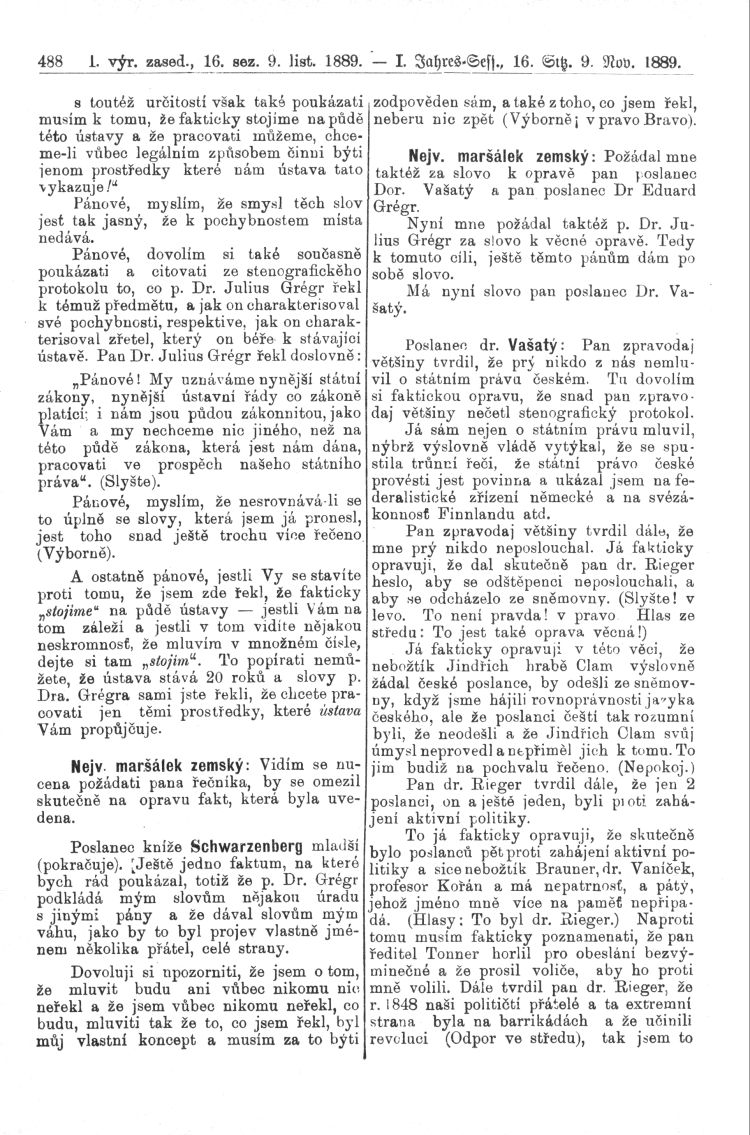 Nacházíte se: Digitální knihovna › Sněm království Českého 1889-1895 › 1. zasedání › Stenoprotokoly › 16. schůze › Sobota 9. listopadu 1889