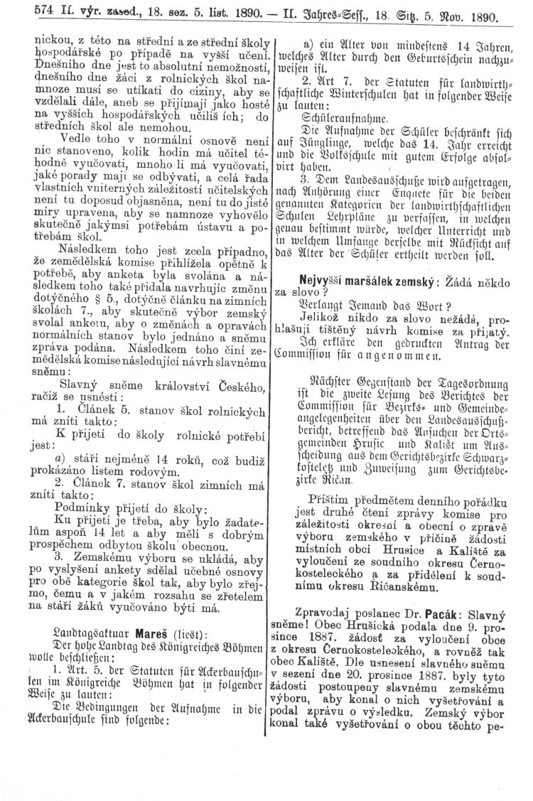 Středa 5. listopadu 1890