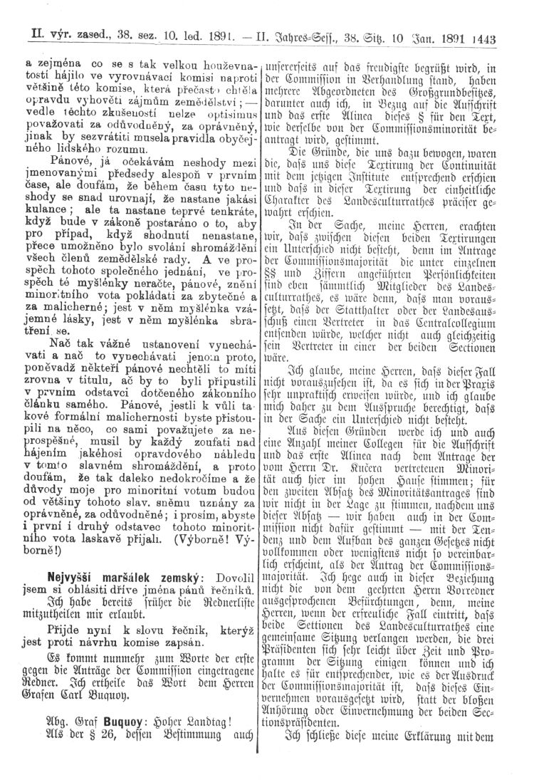 Nacházíte se: Digitální knihovna › Sněm království Českého 1889-1895 › 2. zasedání › Stenoprotokoly › 38. schůze › Sobota 10. ledna 1891
