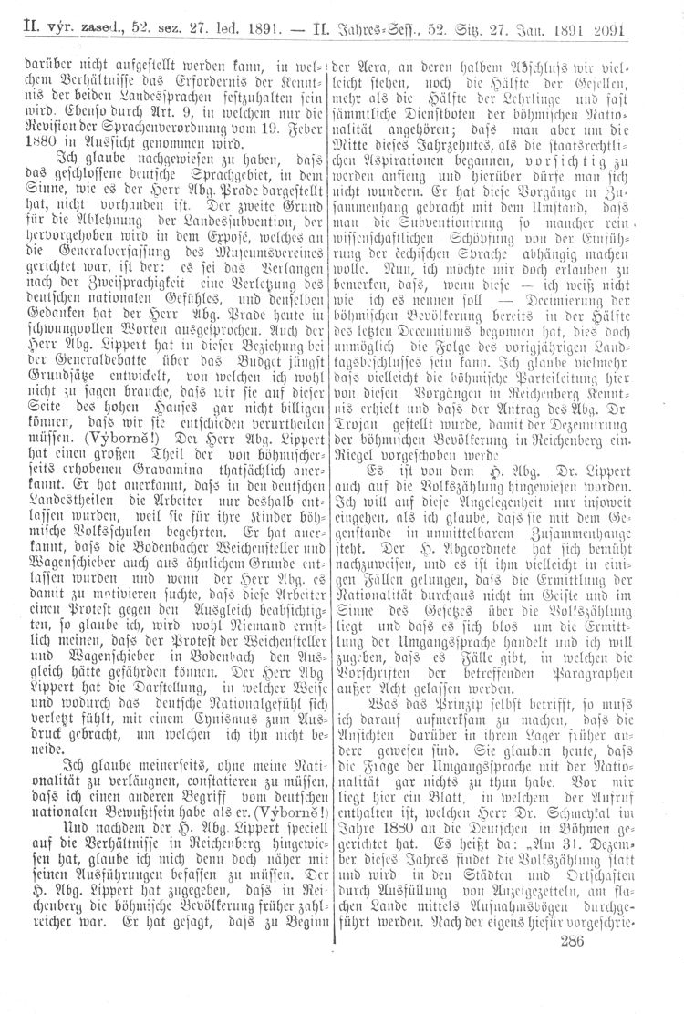 Nacházíte se: Digitální knihovna › Sněm království Českého 1889-1895 › 2. zasedání › Stenoprotokoly › 52. schůze › Úterý 27. ledna 1891