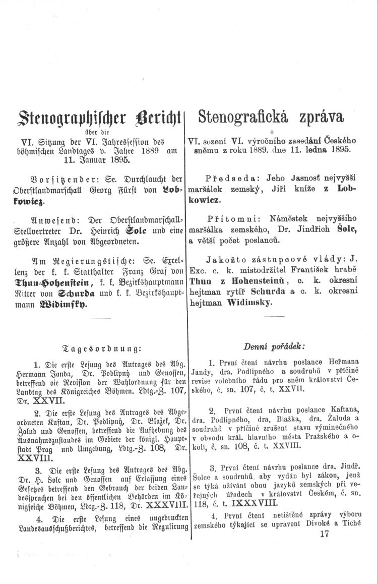 Nacházíte se: Digitální knihovna › Sněm království Českého 1889-1895 › 6. zasedání › Stenoprotokoly › 6. schůze › Pátek 11. ledna 1895