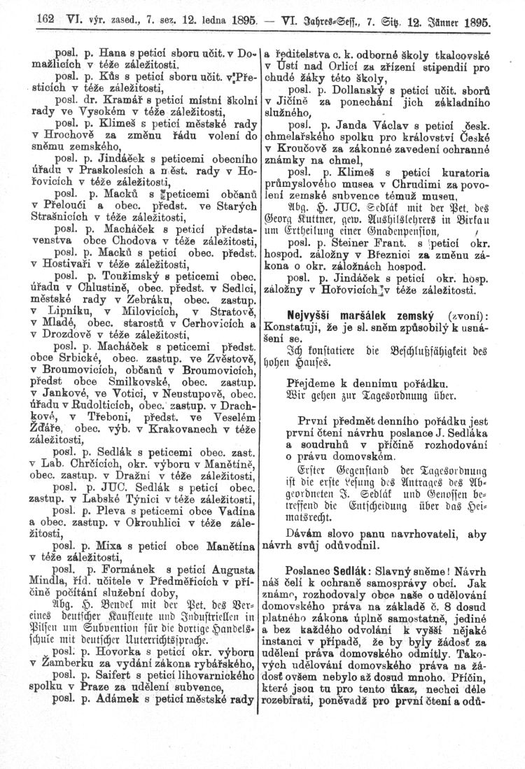 Nacházíte se: Digitální knihovna › Sněm království Českého 1889-1895 › 6. zasedání › Stenoprotokoly › 7. schůze › Sobota 12. ledna 1895