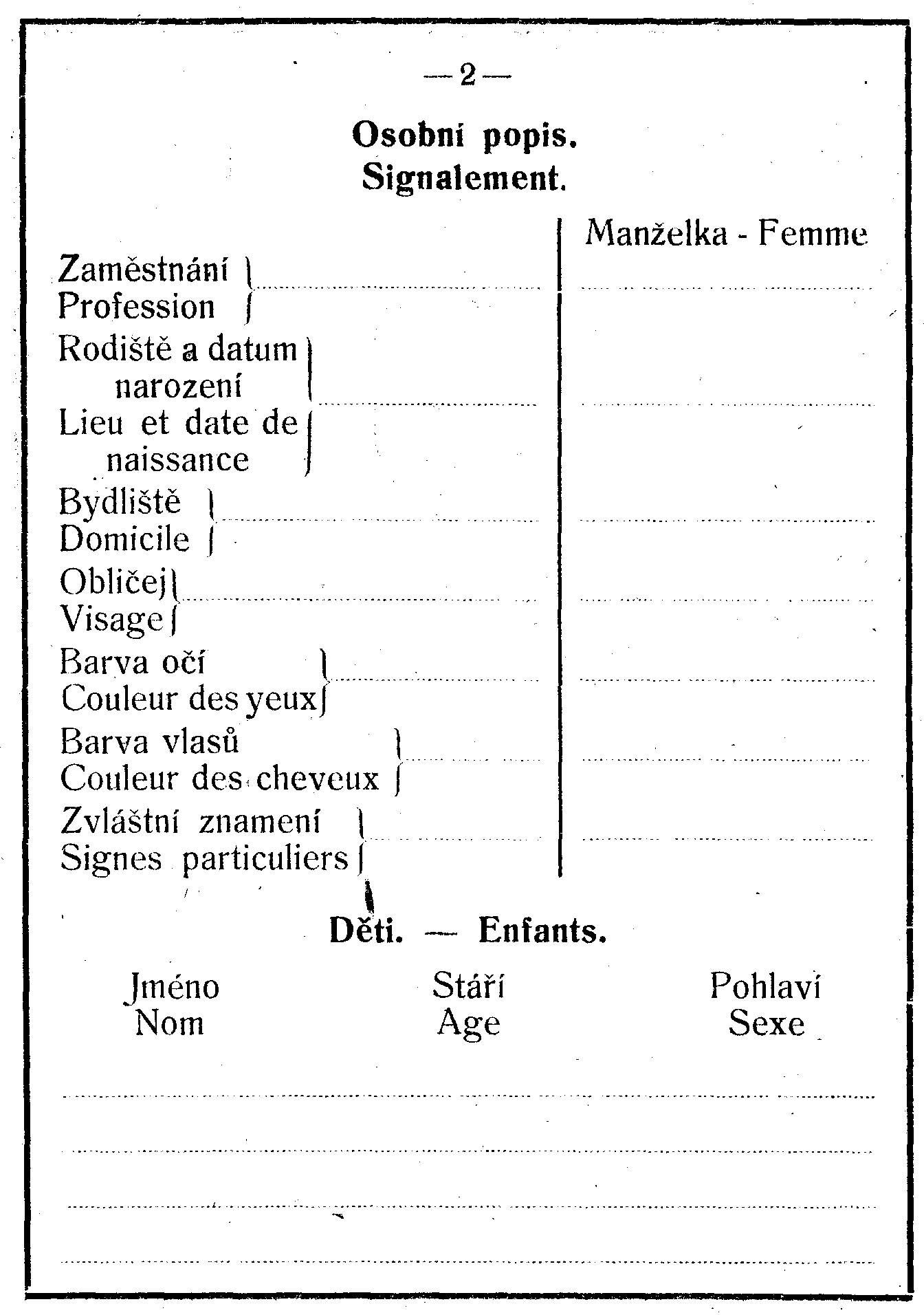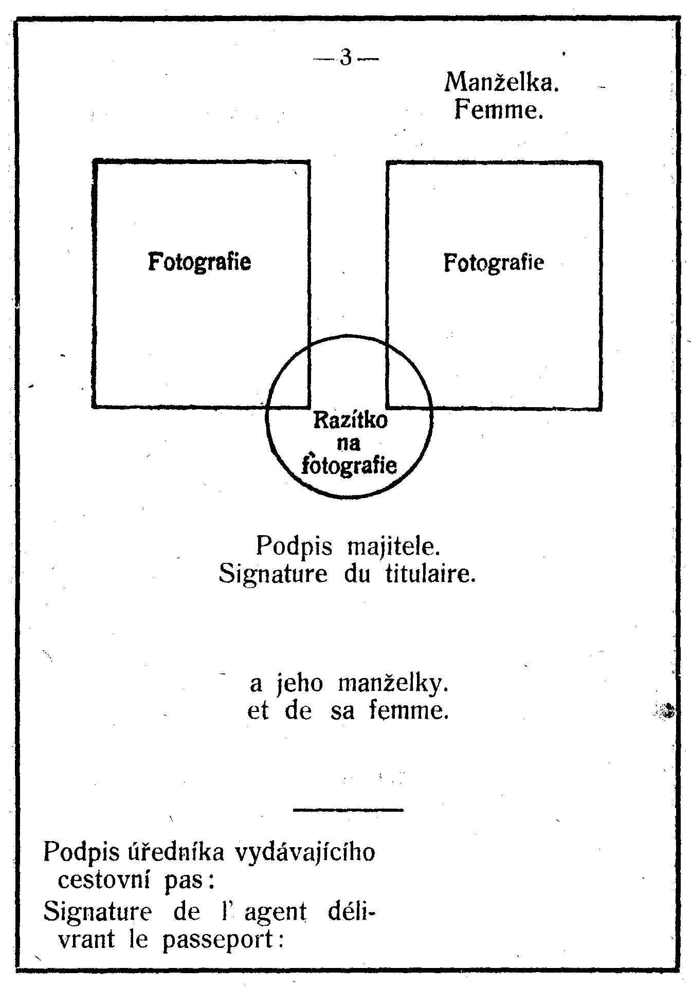 Pro každou osobu jest vydati pas zvláštní, avšak manželka a vlastní děti mladší 15 let mohou býti zapsány na pase osoby, s níž cestují. Je-li zapsána manželka, musí býti připojena též její fotografie.
