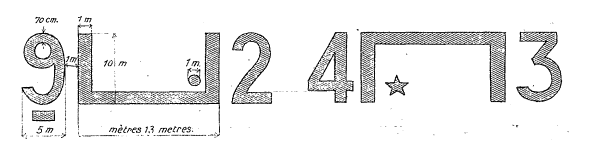 Le cadre rectangulaire et les chiffres devront avoir au moins les dimensions indiquées sur les croquis ci-dessus.