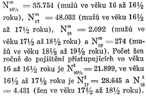 17 let, stanovena pak ze středního = 0,45 úměrně