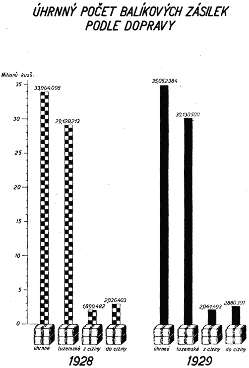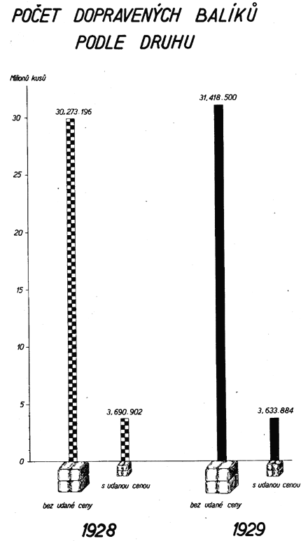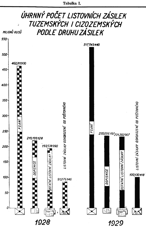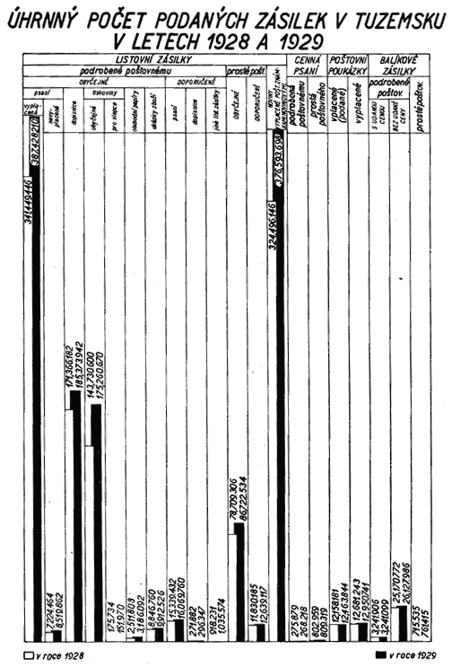 Po takto provedené úpravě, zajišťující stejnou srovnávací základnu, vykazují jednotlivá odvětví podniku Čsl. pošta za rok 1928 tyto výsledky:
