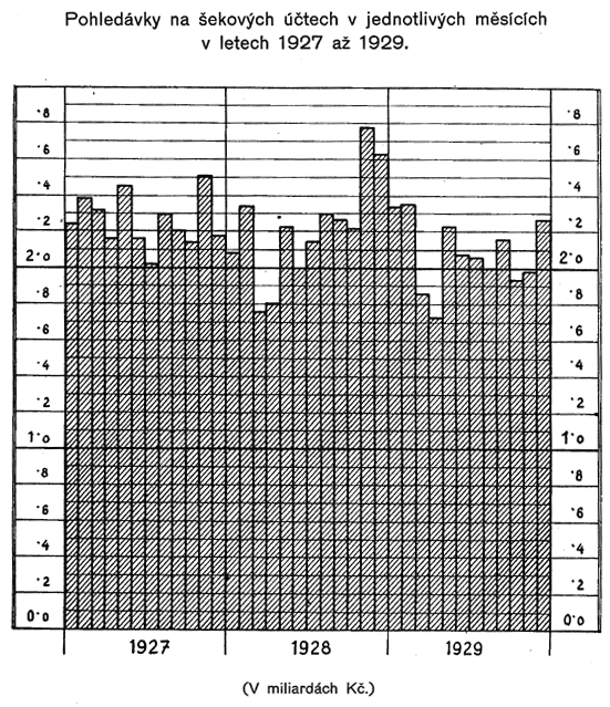 Kdyby tyto investiční výdaje a dotace reservního fondu byly účtovány jako účiny ztrátové, změnila by se vyznačená čísla rozdílů mezi hospodářskými výsledky jednotlivých let 1920 až 1929 a hospodářským výsledkem roku 1919 asi takto: