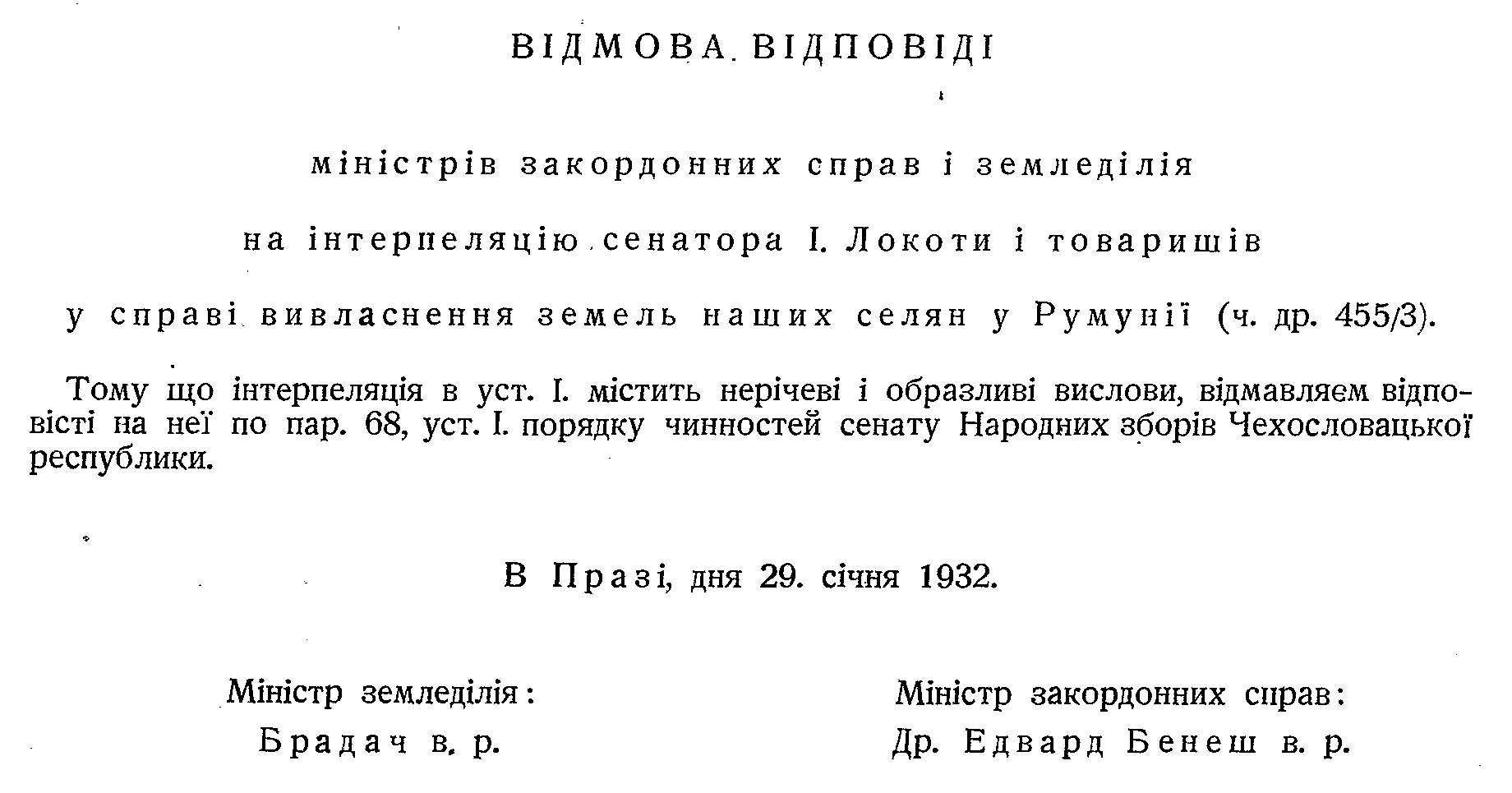 V Praze, dne 29. ledna 1932.