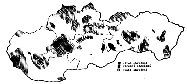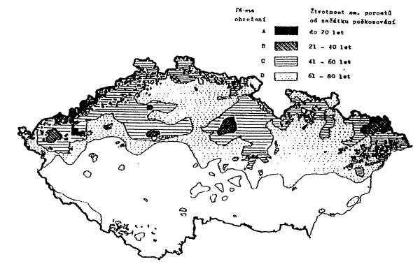 Vývoj lesů je na většině území ČSFR negativně ovlivňován antropogenním působením, zejména imisemi a depozicemi škodlivých látek, především sloučenin síry, dusíku, fluóru, chlóru, těžkých kovů (As, Zn, Pb, Cd), uhlovodíků, ozónu, prachových částic, nelze vyloučit ani vliv ionizující záření, případně elektromagnetického pole.