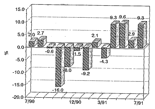 Prudký pokles celkových vývozů a dovozů ve všech základních teritoriálních relacích v prvním čtvrtletí přechází do oživení ve druhém čtvrtletí s výjimkou dalšího, ale již malého snížení dovozu z oblasti bývalých socialistických zemí. Červencový vývoz se oproti červnu zvýšil o 8,9 % (vývoz do SRN o 10,3 %). Přitom vývoz strojů a zařízení byl v červenci o 18,2 % vyšší než v předchozím měsíci. Celkový dovoz poklesl o 6,2 %.
