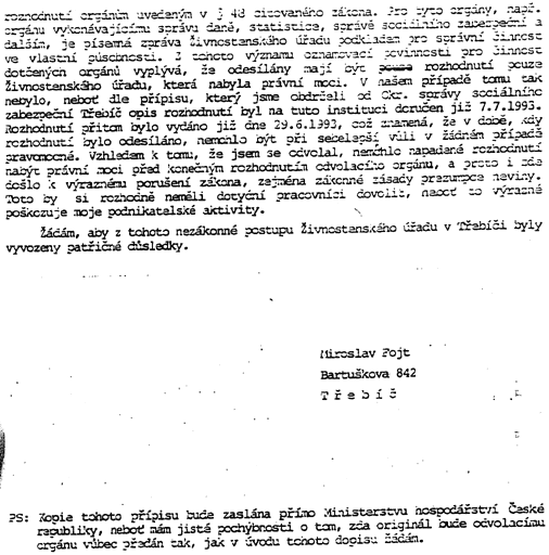 byl M. Fojtovi doručen dopis Živnostenského