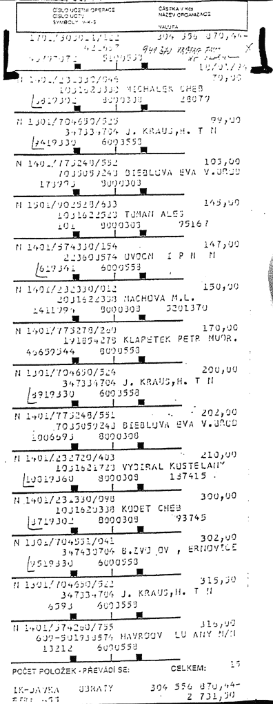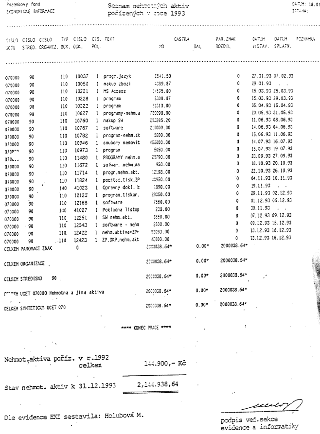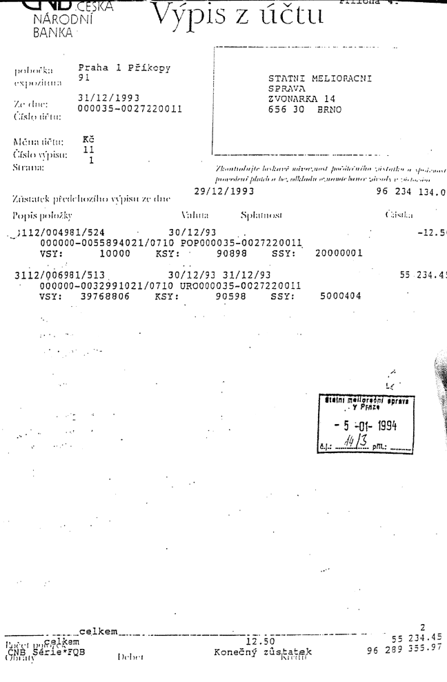 fotokopii výpisu z účtu k 31.12.1993.