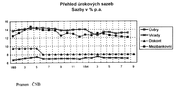 by se měla v roce 1994 pohybovat okolo 13 % p.a., průměrná