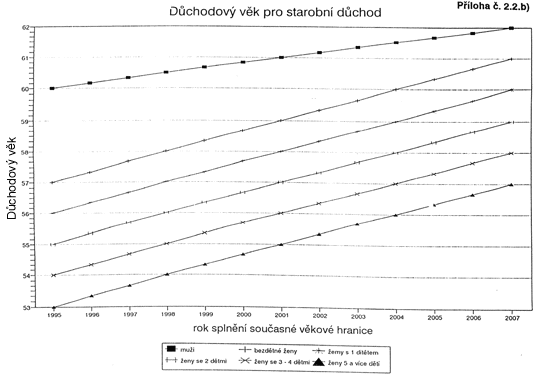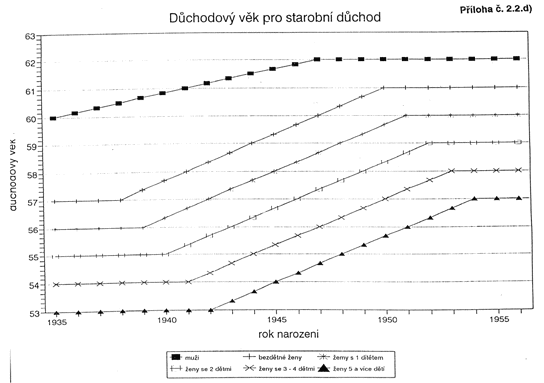 | věková hranice 57 let pro ženy v zaměstnaneckém systému penzijního pojištění se bude postupně do roku 1999 zvyšovat na 60 let. | ||||