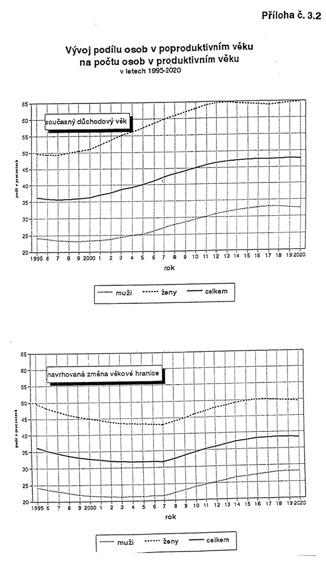 | bude se postupně zvyšovat na 65 let (muži) a na 60 let (ženy) během období od r. 1994 do r. 2002 | v případě propouštění podnik s hospodářskými potížemi důchod vztažený na délku zaměstnání náleží po 35 letech placení příspěvků | |||
