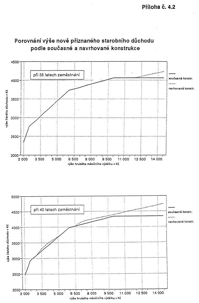 2) za předpokladu zvýšení důchodů v roce 1995 o 260 Kč a 5%
