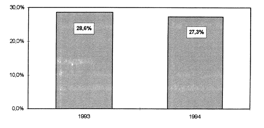 za rok 1994 mírně poklesla na 11,0 % (proti