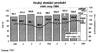 Podle odhadu ČSÚ byl hrubý domácí produkt za 1. čtvrtletí 1995 ve stálých cenách proti stejnému čtvrtletí roku 1994 vyšší o 3,2 až 4,6%. Vzrostly všechny složky agregátní poptávky.