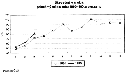 Zřetelný růst výroby průmyslu, ke kterému došlo ve druhé polovině roku 1994, pokračoval. Jeho intenzita se v prvních měsících roku 1995 zvýšila. Průmyslový output za 1. čtvrtletí roku 1995 meziročně vzrostl o 5,8 %, produkce stavebnictví se zvýšila o 11,7 %, maloobchodní prodej o 4,6 % (vše ve srovnatelných cenách).