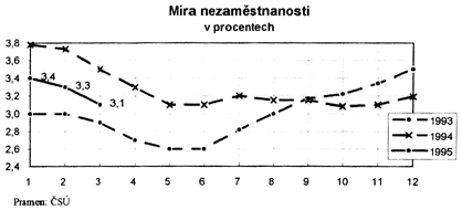 Počet nezaměstnaných v průměru za 1. čtvrtletí 1995 činil 171 tisíc osob (proti 193 tisícům ve stejném období roku 1994). Míra nezaměstnanosti koncem března klesla na 3,1 %.