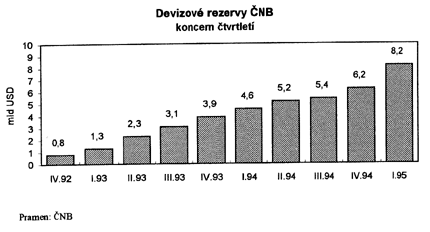 Vývoj české ekonomiky na počátku roku 1995 v zásadě odpovídal rámci vládou předpokládaných trendů. Intenzivněji pokračuje růst ekonomického výkonu dokumentovaný meziročním přírůstkem HDP ve stálých cenách, ale i vzestupem výkonu hlavních odvětví. Proti predikci došlo ke zvýraznění záporného salda obchodní bilance, což návazně vedlo i k mírně deficitnímu saldu běžného účtu platební bilance. Dosavadní vývoj jednoznačně potvrdil růstové trendy.