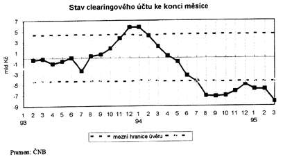 V průběhu 1. čtvrtletí 1995 se na clearingovém účtu mezi ČR a SR znovu potvrdila tendence ke schodku. Bylo to především ovlivněno nižším celkovým přebytkem obchodní bilance se Slovenskem (1,3 mld Kč proti 3,6 mld Kč v 1. čtvrtletí 1994) v důsledku růstu dovozu meziročně o 17,8 % při růstu vývozu pouze o 0,7 %.