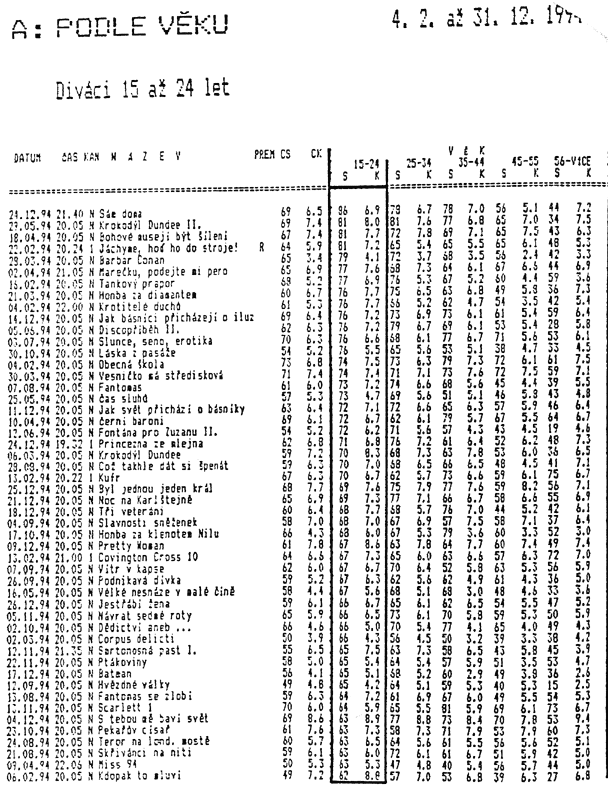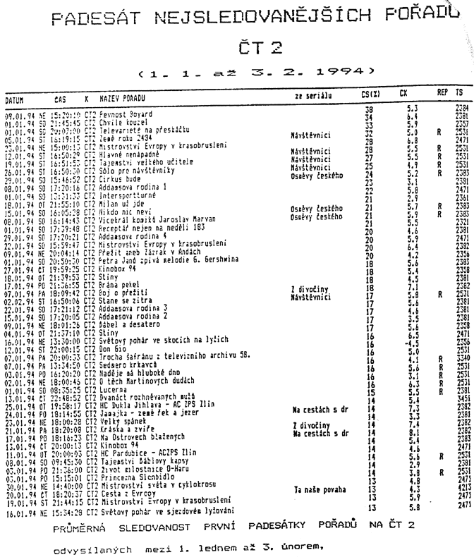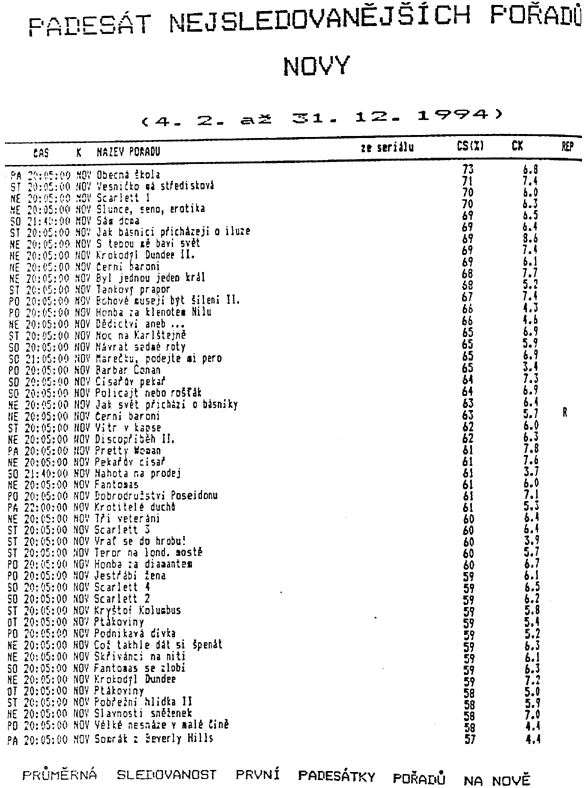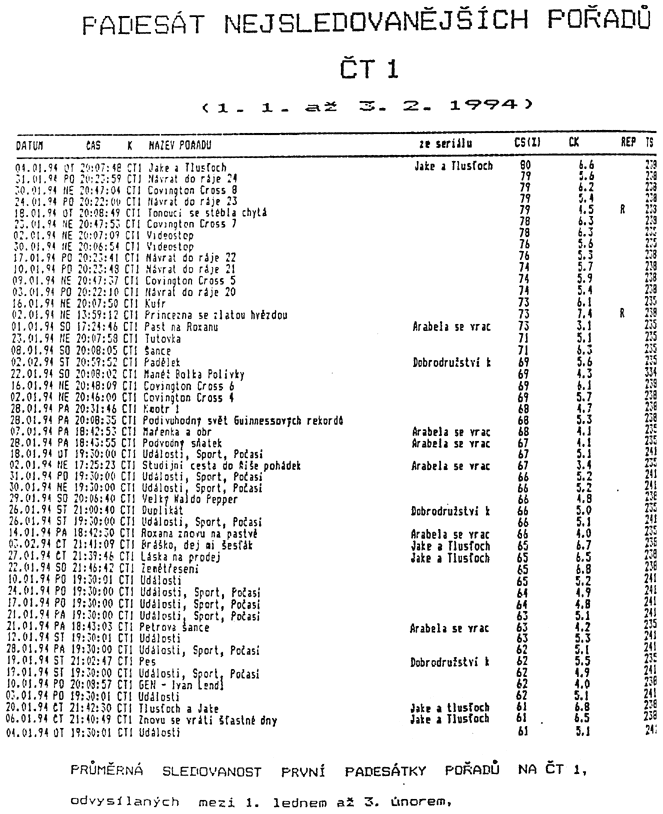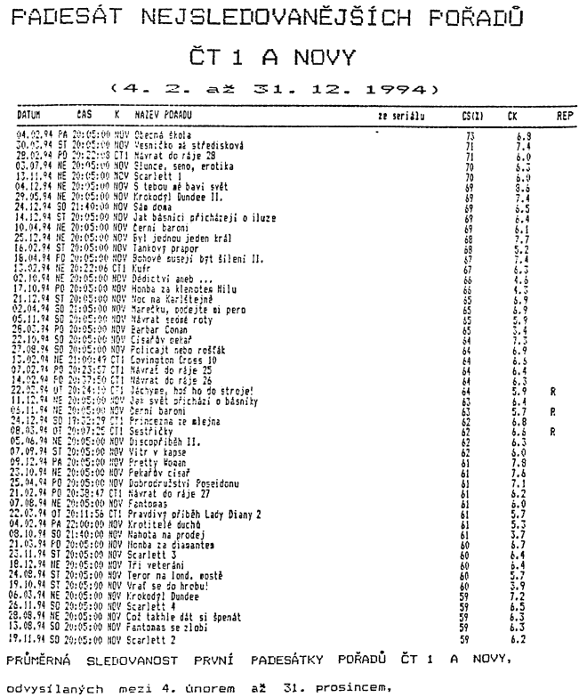 U obou skupin se na 1. pořadí dostaly tituly odvysílané
