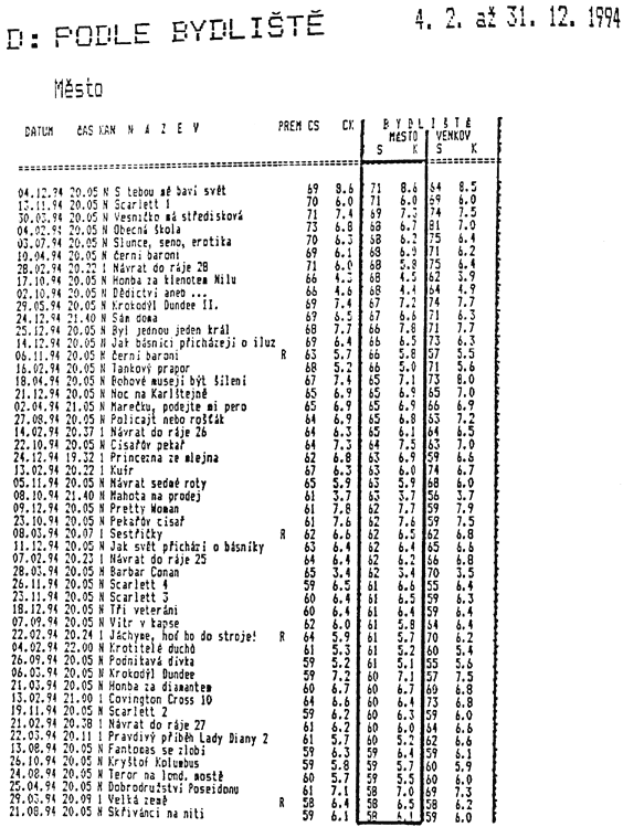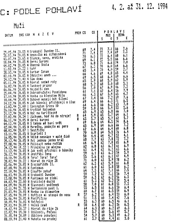| 302 ČT1 dnes odpoledne | (reklama, inzerce atd.) |