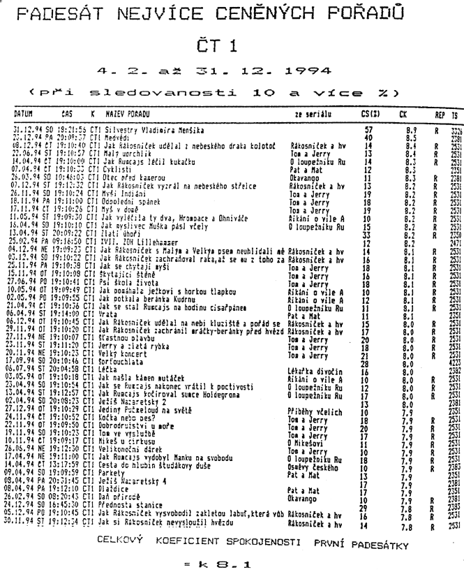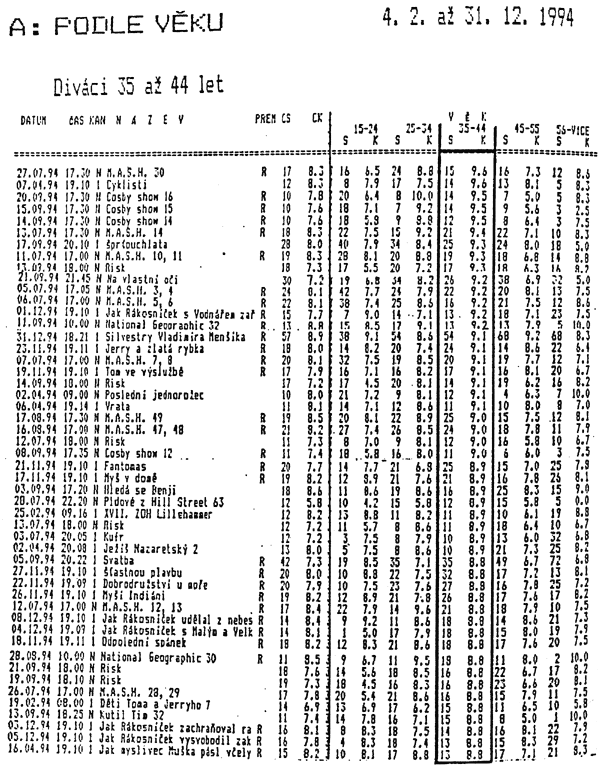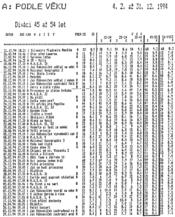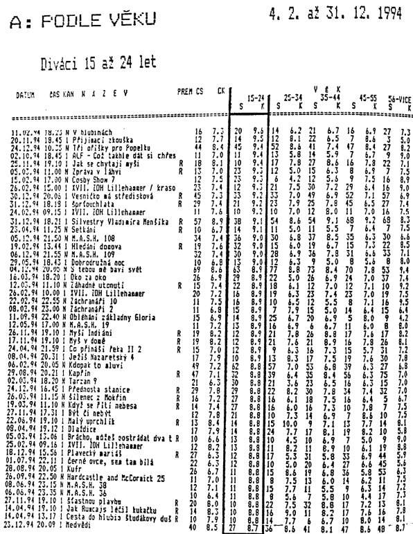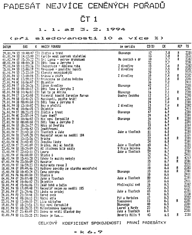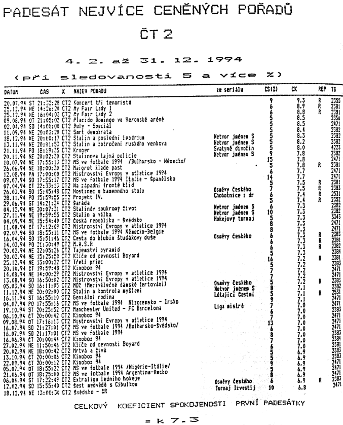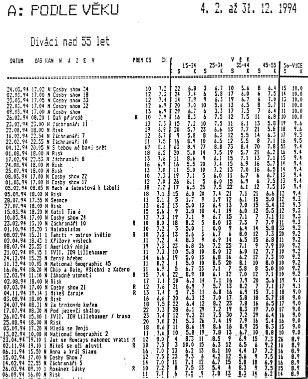 od 10 do 30 % - celkem 44 pořadů). Stručně