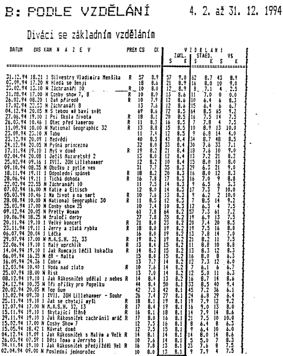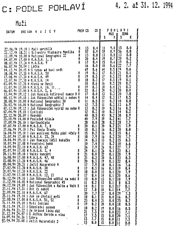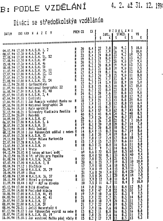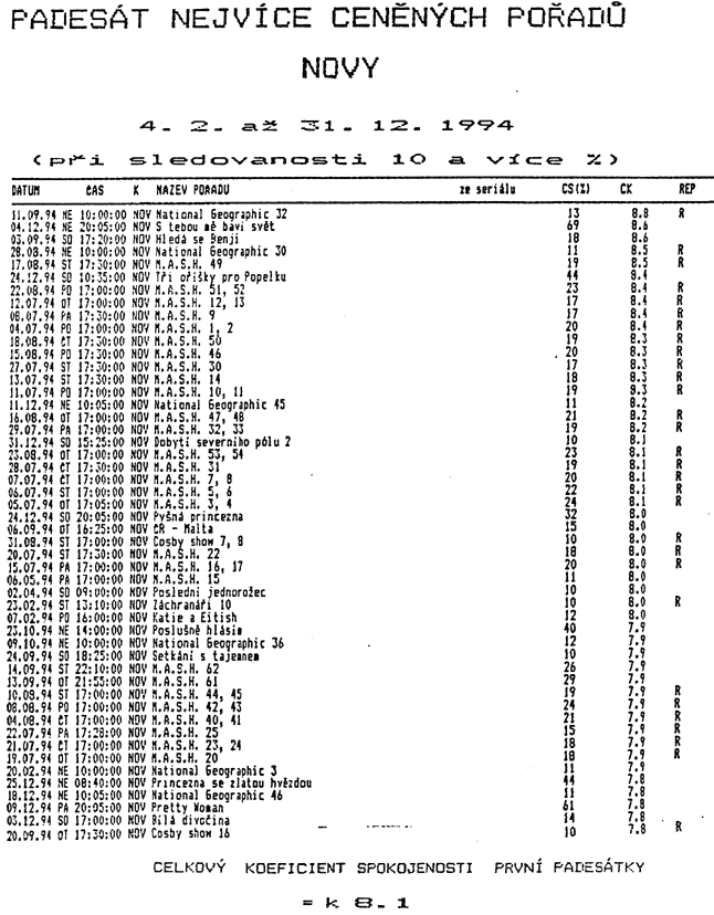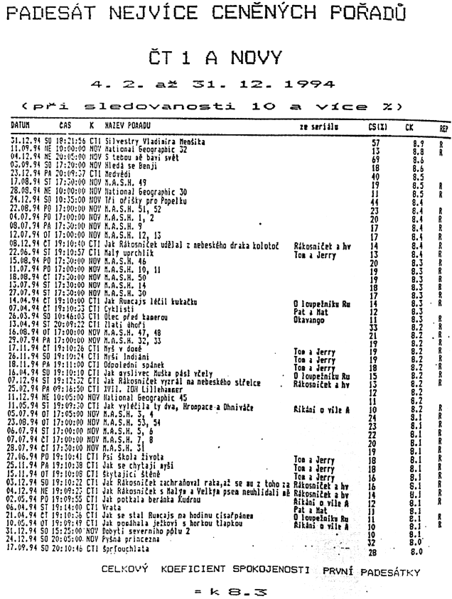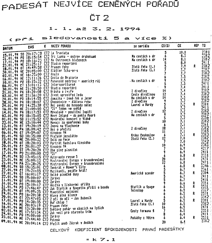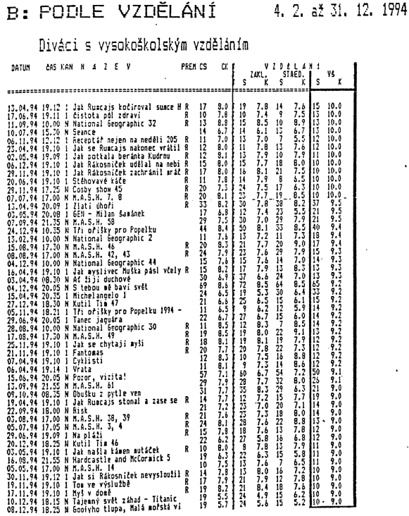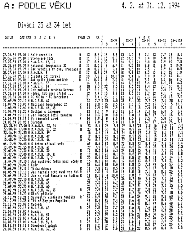 od 10 do 30 % - celkem 44 pořadů). Stručně