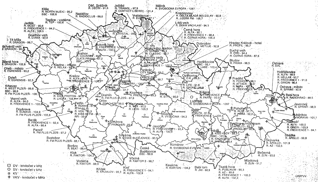 Mapa č. 3 - Přehled umístění vysílačů Českého Rozhlasu