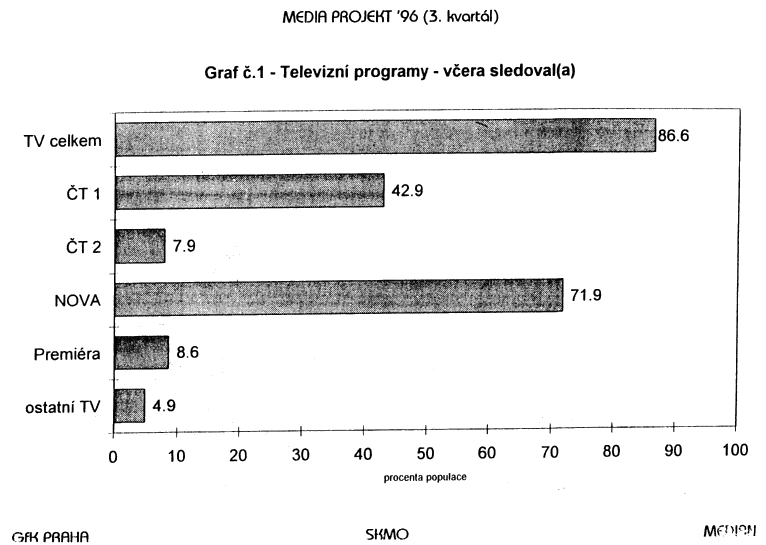 Následující údaje jsou převzaty z výzkumů sledovanosti médií Mediaprojekt, který se uskutečňuje jako standardní oficiální výzkum sledovanosti sdělovacích prostředků v České republice.