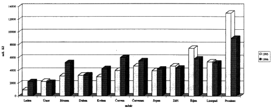 v mil. Kč | Skutečnost 1995 | Skutečnost 1996 | Index 96/95 | |