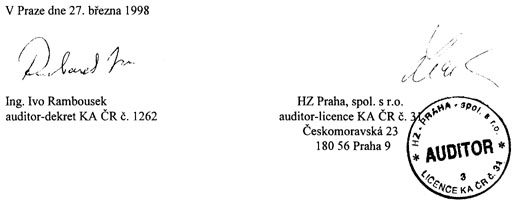 5/7, Praha 1, IČO: 47 11 50 68 k 31. prosinci 1997. Za