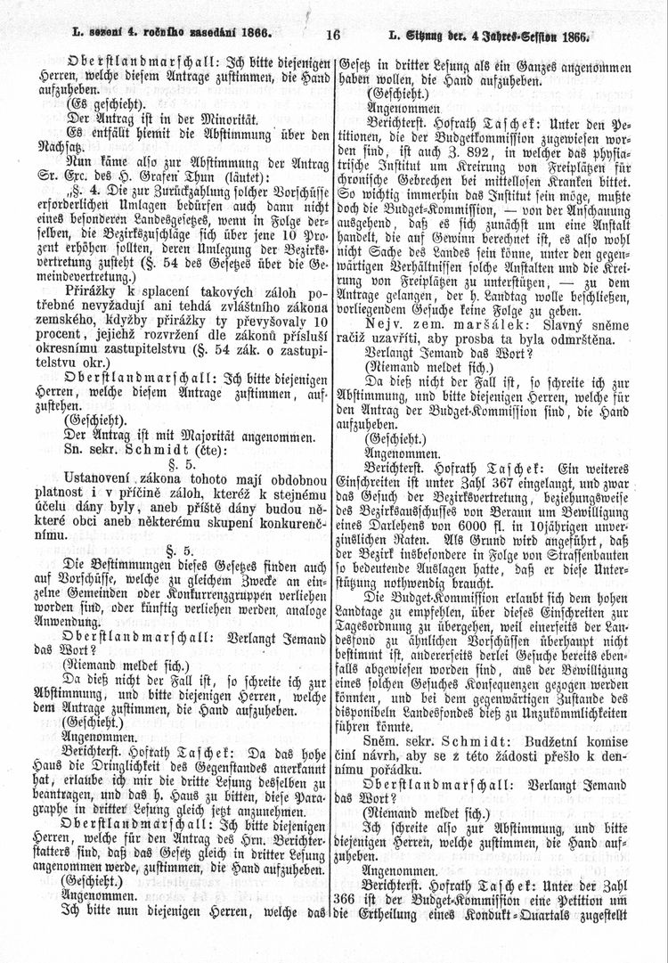 Nacházíte se: Digitální knihovna › Sněm království Českého 1861-1866 › Stenoprotokoly › 50. schůze › Pátek 16. března 1866