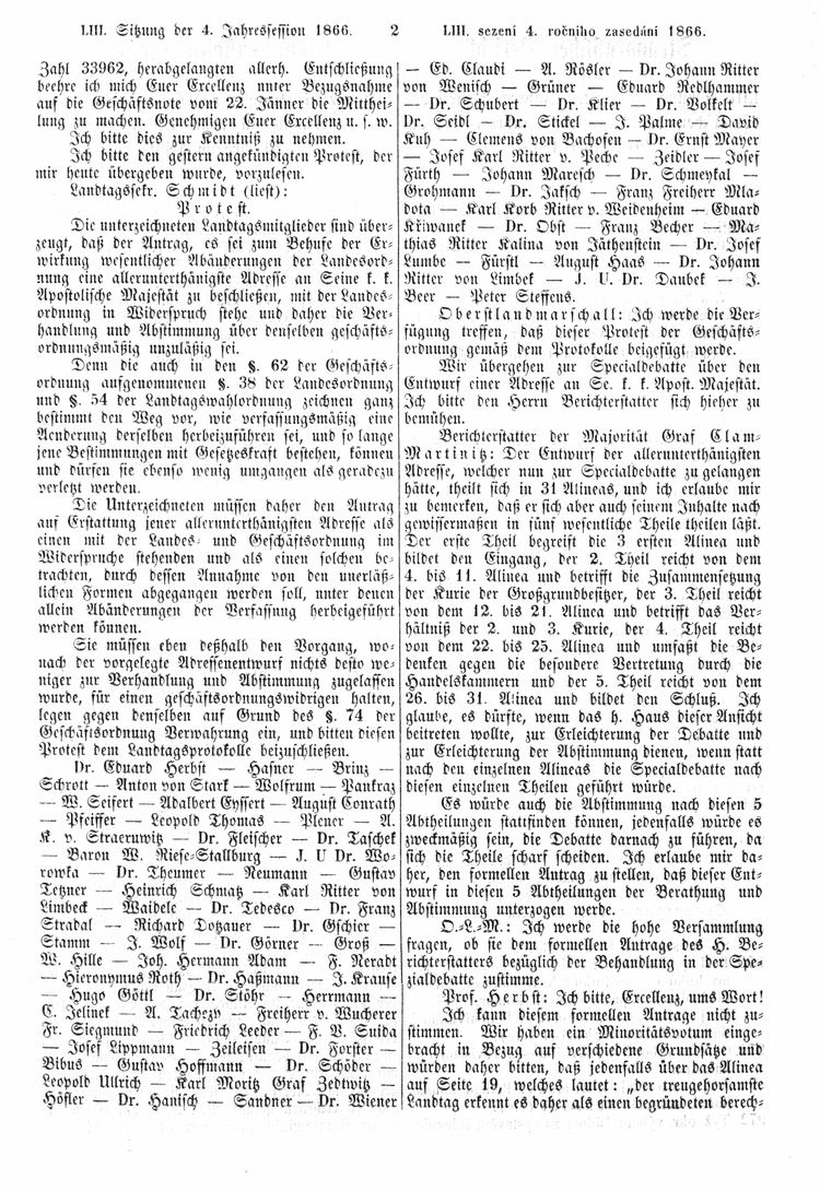 Nacházíte se: Digitální knihovna › Sněm království Českého 1861-1866 › Stenoprotokoly › 53. schůze › Úterý 20. března 1866