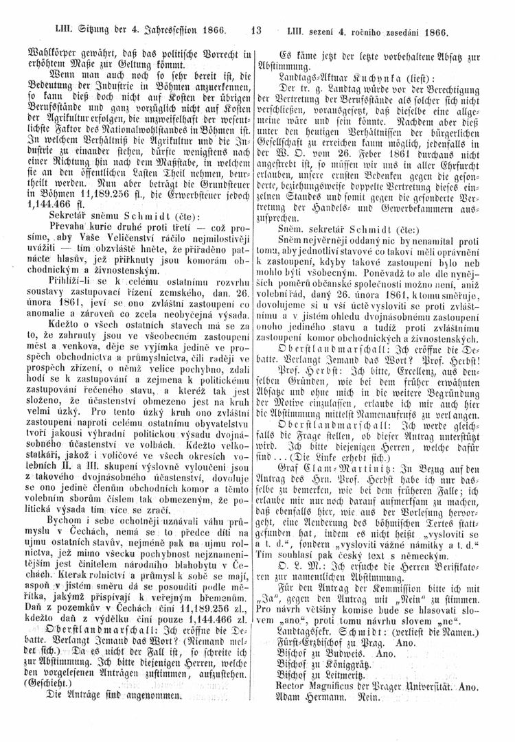 Nacházíte se: Digitální knihovna › Sněm království Českého 1861-1866 › Stenoprotokoly › 53. schůze › Úterý 20. března 1866