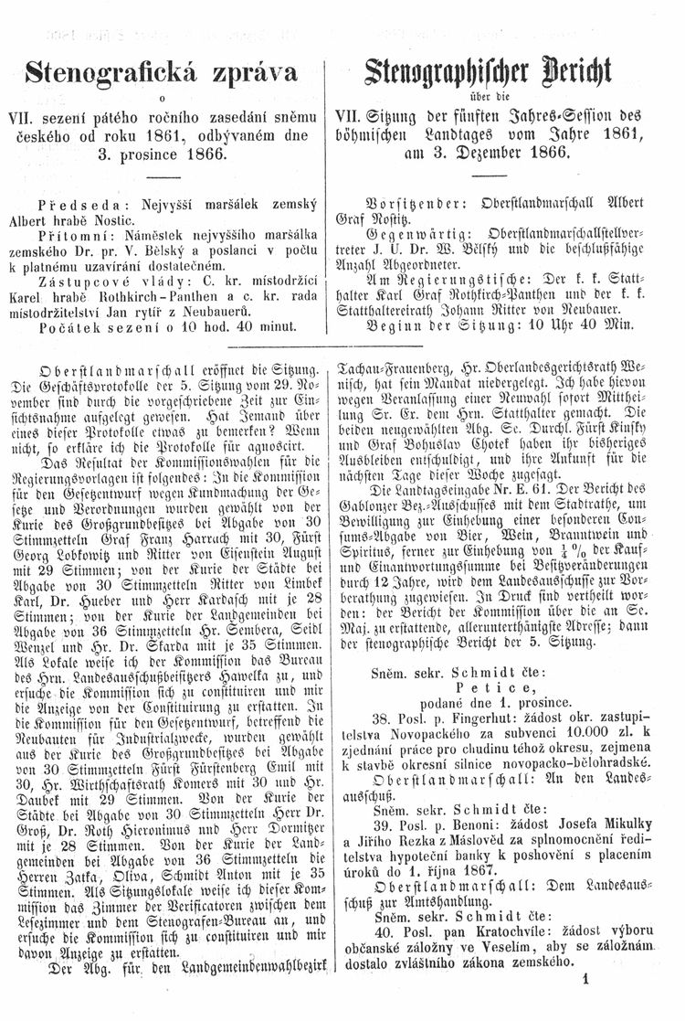Nacházíte se: Digitální knihovna › Sněm království Českého 1861-1866 › Stenoprotokoly › 7. schůze › Pondělí 3. prosince 1866
