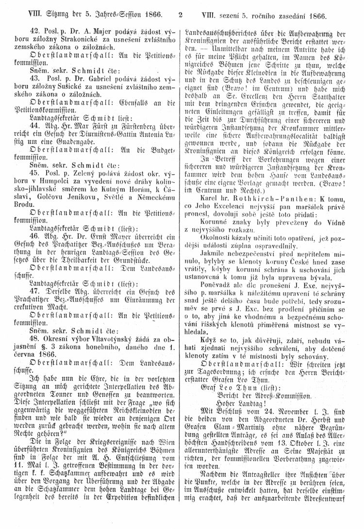 Nacházíte se: Digitální knihovna › Sněm království Českého 1861-1866 › Stenoprotokoly › 8. schůze › Čtvrtek 6. prosince 1866