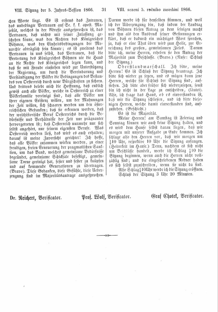 Nacházíte se: Digitální knihovna › Sněm království Českého 1861-1866 › Stenoprotokoly › 8. schůze › Čtvrtek 6. prosince 1866