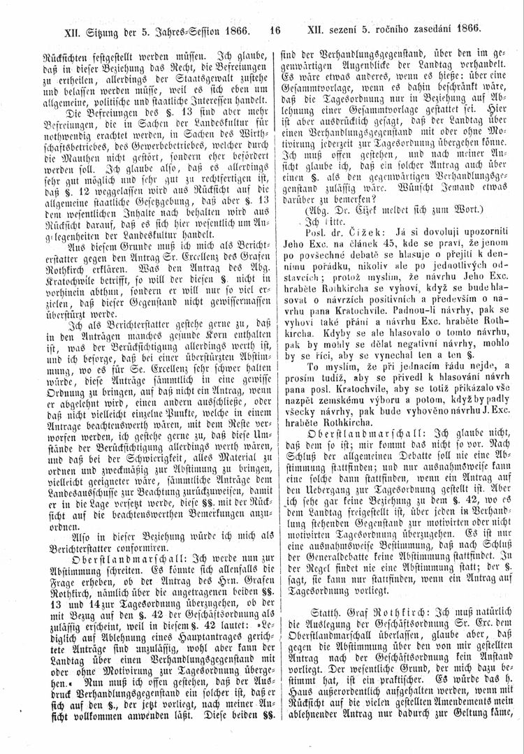 Nacházíte se: Digitální knihovna › Sněm království Českého 1861-1866 › Stenoprotokoly › 12. schůze › Čtvrtek 13. prosince 1866