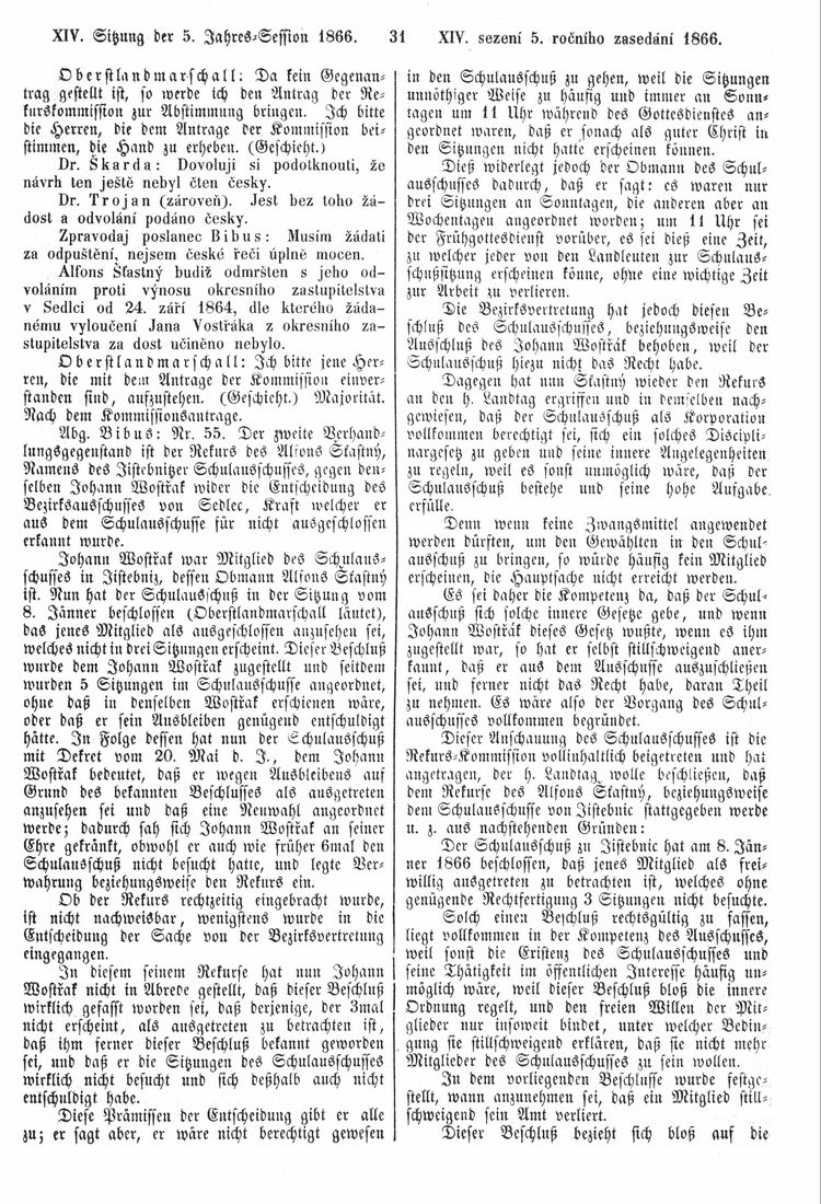 Nacházíte se: Digitální knihovna › Sněm království Českého 1861-1866 › Stenoprotokoly › 14. schůze › Úterý 18. prosince 1866