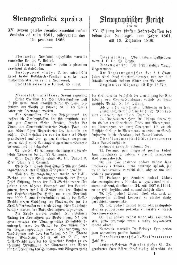 Nacházíte se: Digitální knihovna › Sněm království Českého 1861-1866 › Stenoprotokoly › 15. schůze › Středa 19. prosince 1866