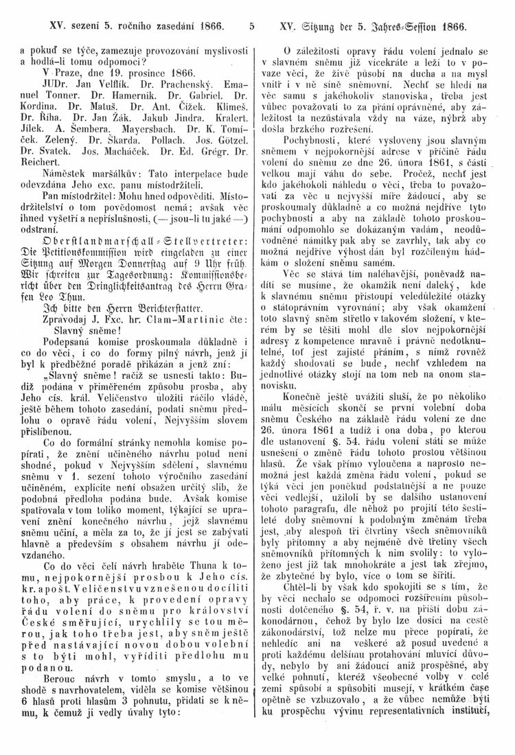 Nacházíte se: Digitální knihovna › Sněm království Českého 1861-1866 › Stenoprotokoly › 15. schůze › Středa 19. prosince 1866