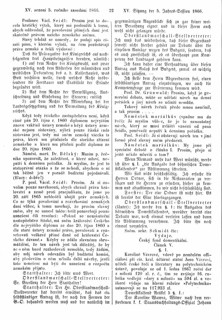 Nacházíte se: Digitální knihovna › Sněm království Českého 1861-1866 › Stenoprotokoly › 15. schůze › Středa 19. prosince 1866