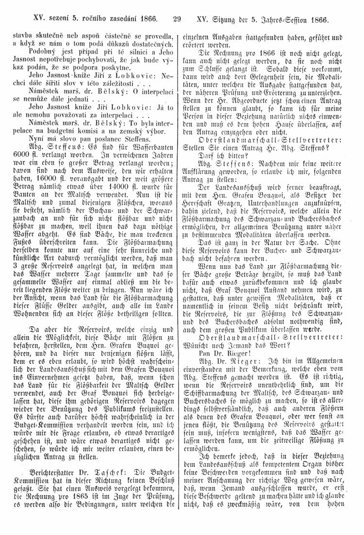 Nacházíte se: Digitální knihovna › Sněm království Českého 1861-1866 › Stenoprotokoly › 15. schůze › Středa 19. prosince 1866