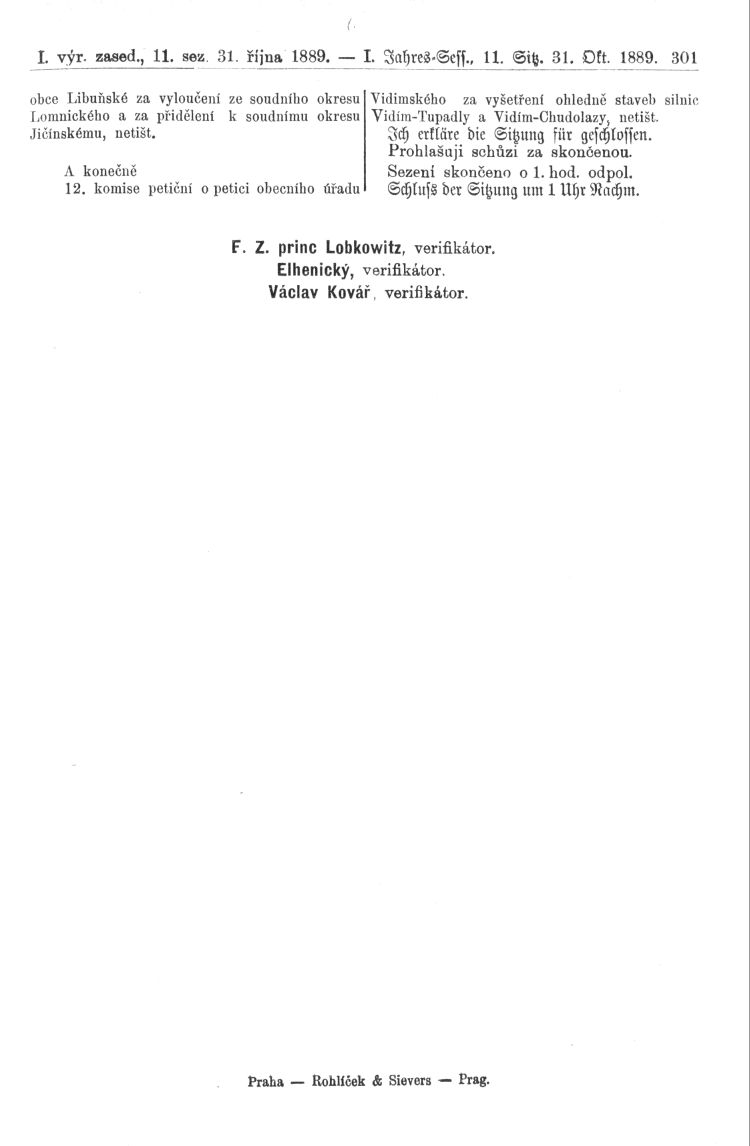 Nacházíte se: Digitální knihovna › Sněm království Českého 1889-1895 › 1. zasedání › Stenoprotokoly › 11. schůze › Čtvrtek 31. října 1889