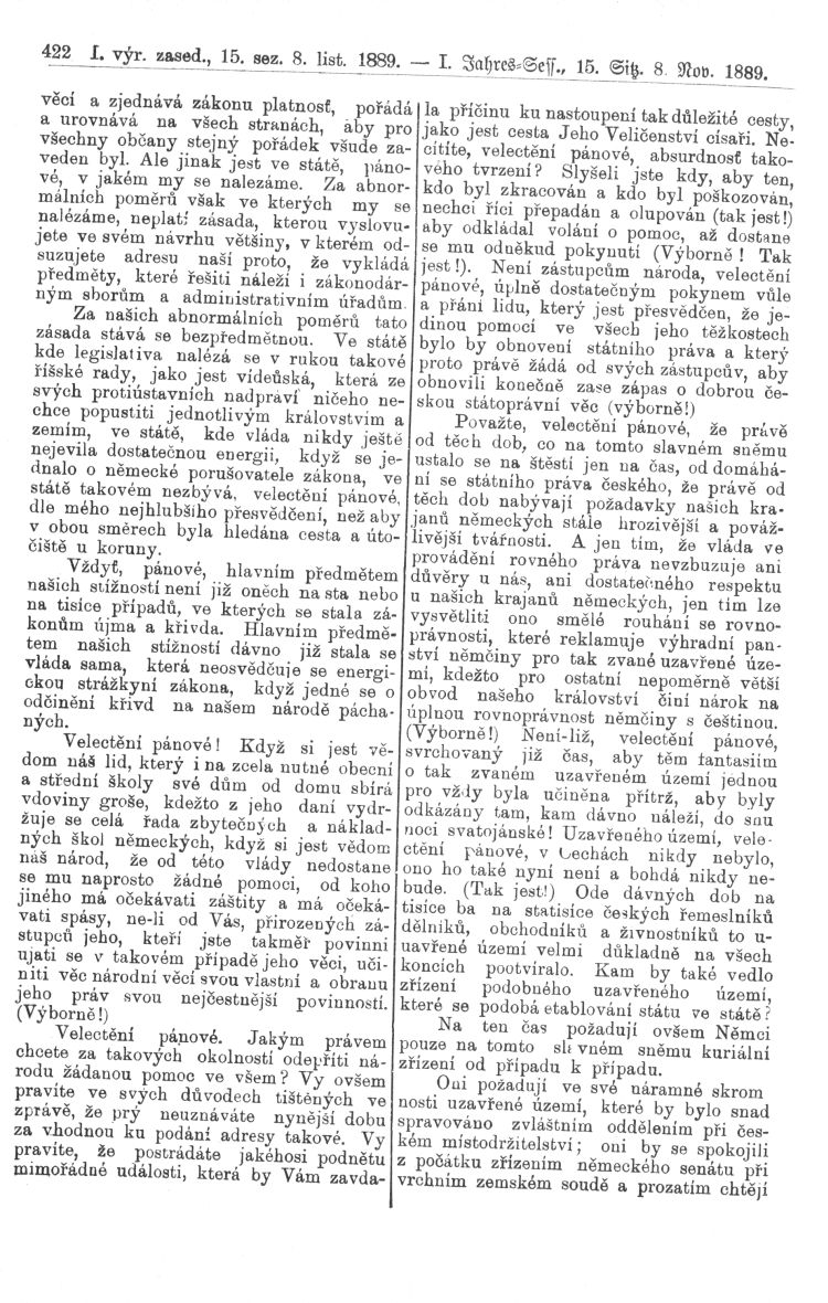 Nacházíte se: Digitální knihovna › Sněm království Českého 1889-1895 › 1. zasedání › Stenoprotokoly › 15. schůze › Pátek 8. listopadu 1889