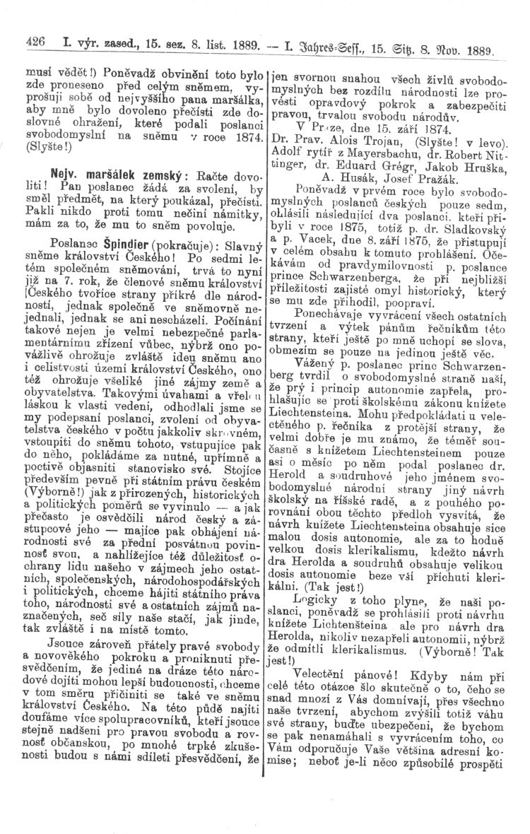 Nacházíte se: Digitální knihovna › Sněm království Českého 1889-1895 › 1. zasedání › Stenoprotokoly › 15. schůze › Pátek 8. listopadu 1889